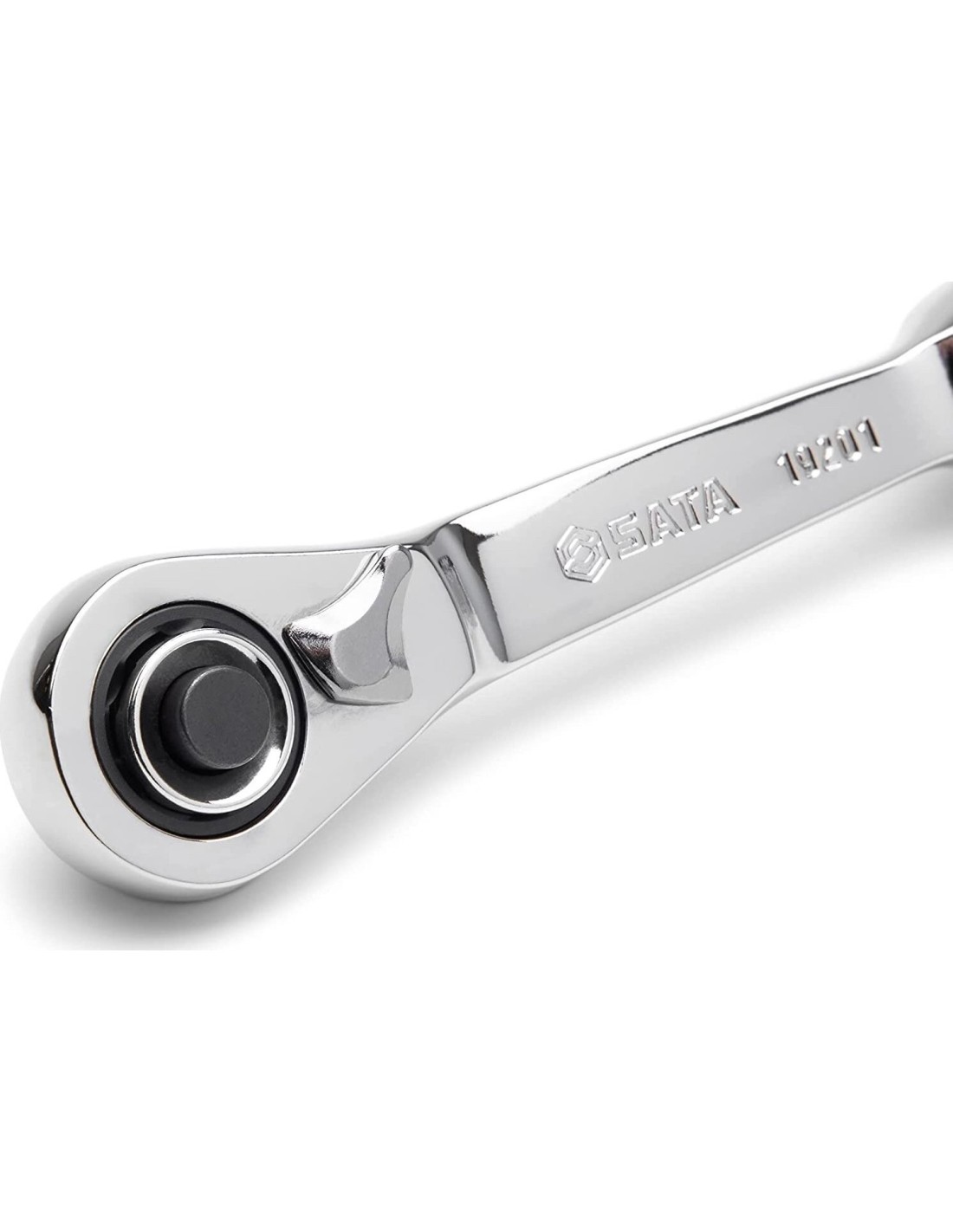 Flush mounted reversing lever allows user to change direction with one hand without removing the wrench