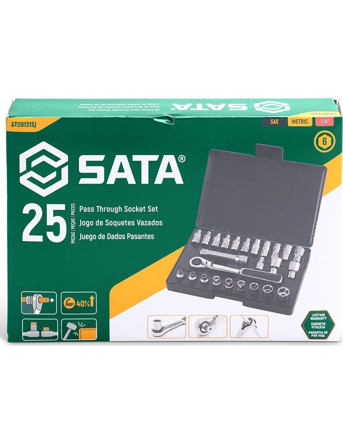 1/4" Dr. Ratchet pass-thru socket set 25pcs (metric & S.A.E)