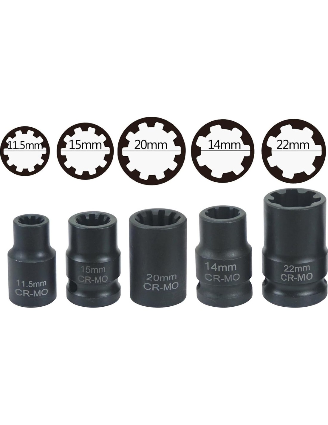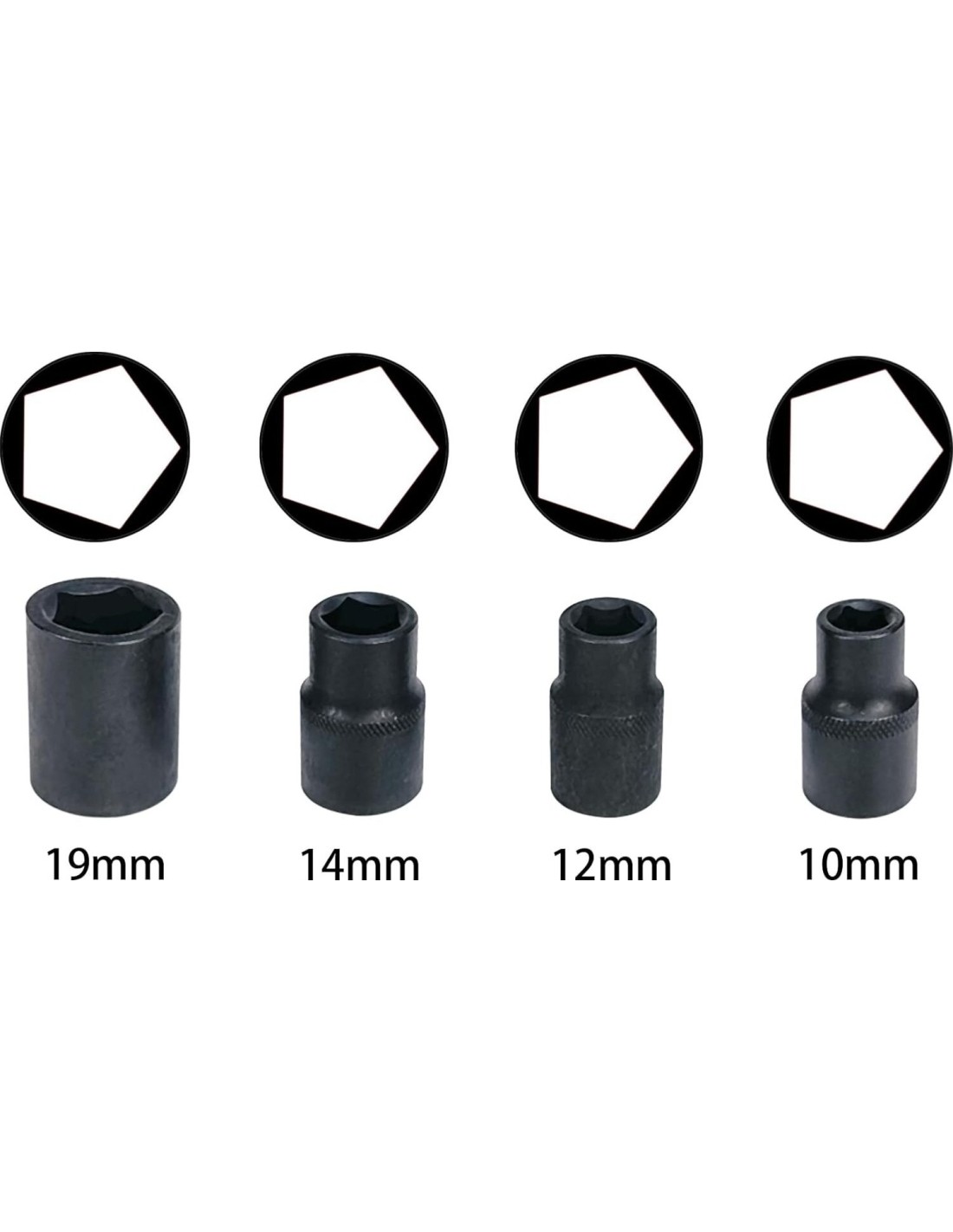 1/2” 5 kampų galvutės: 10, 12.5, 14, 19 mm