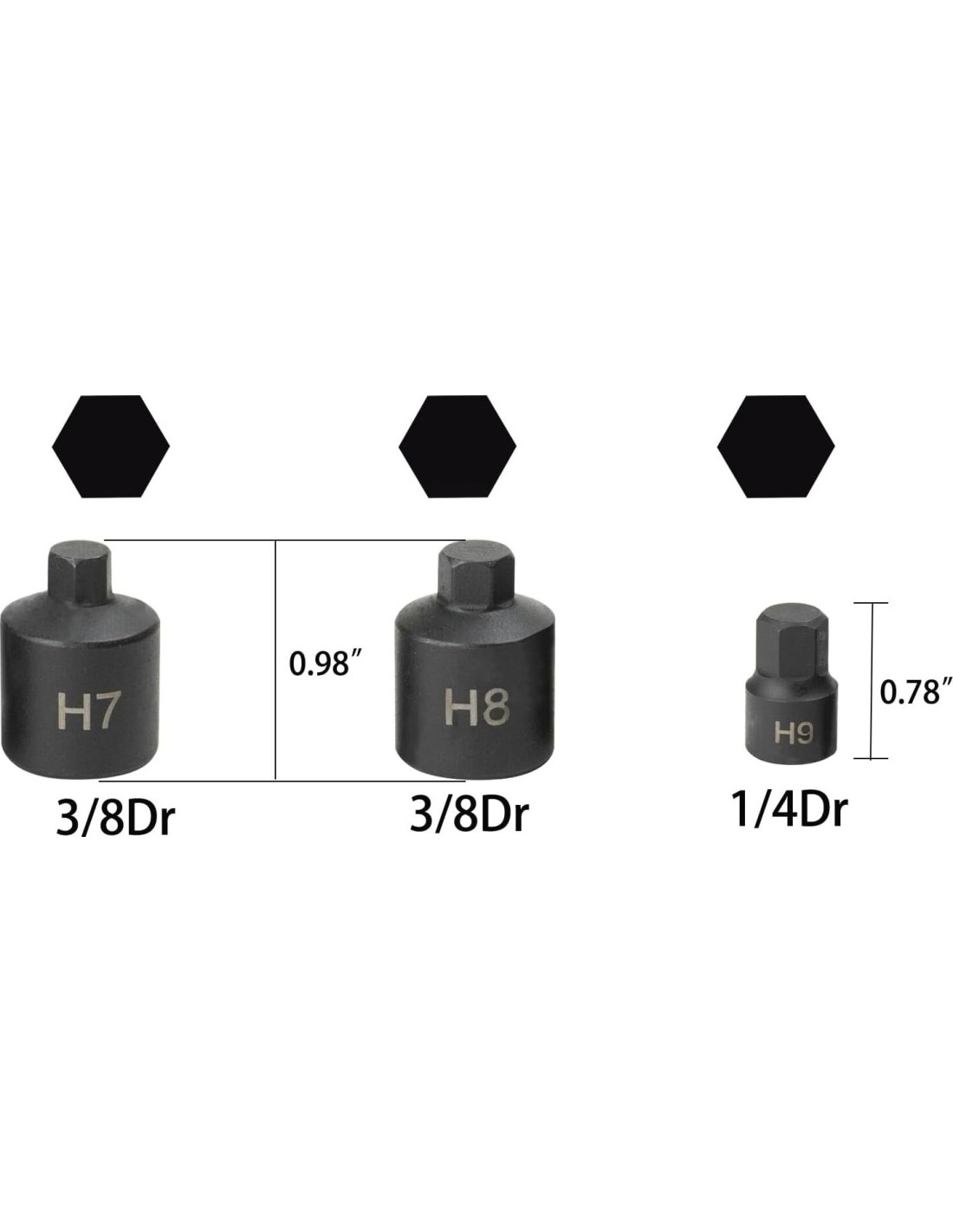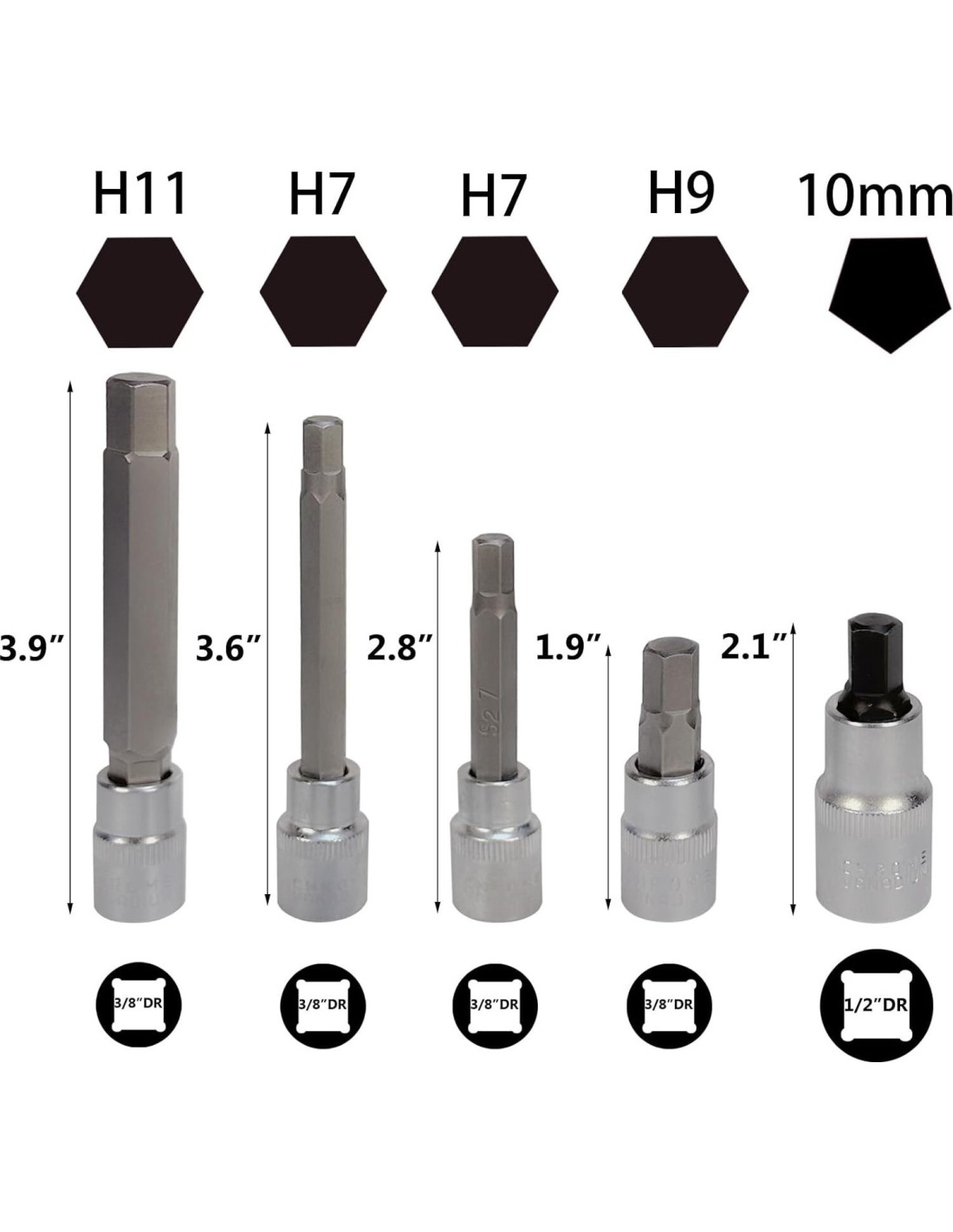 3/8“ Antgaliai HEX: H7 (L = 24 mm), H7 (L = 71 mm), H7 (L = 92 mm), H8 (L = 24 mm), H9 (L = 48 mm), H11 (100 mm); H7, H8 (L = 24 mm)