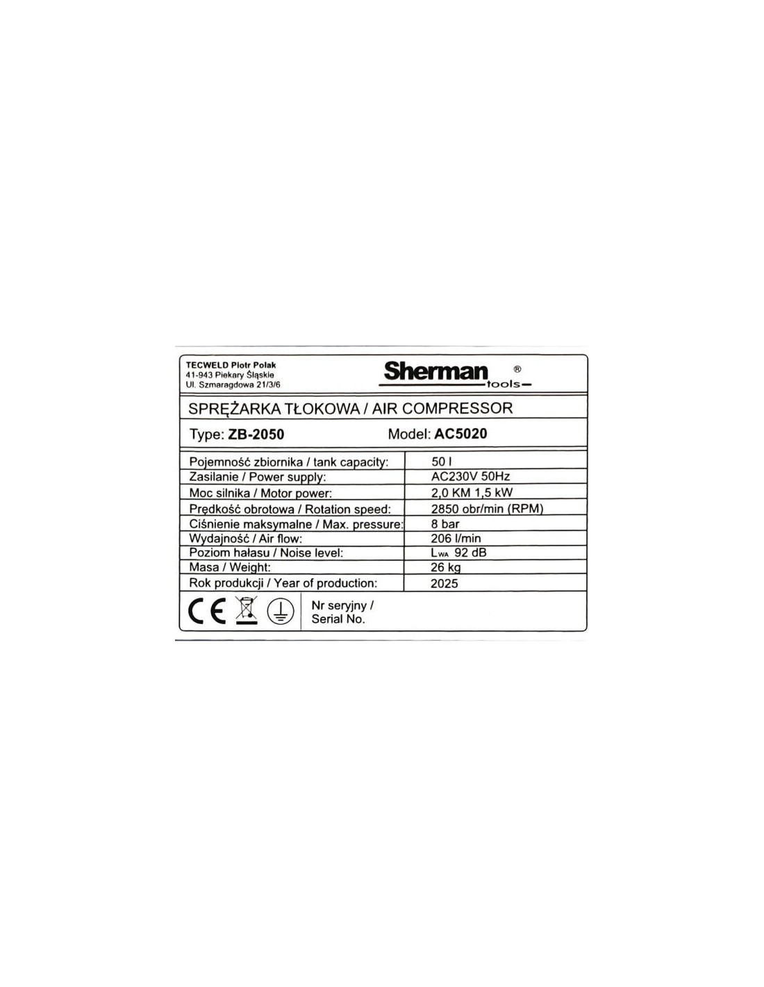 - Poziom mocy akustycznej [dB]