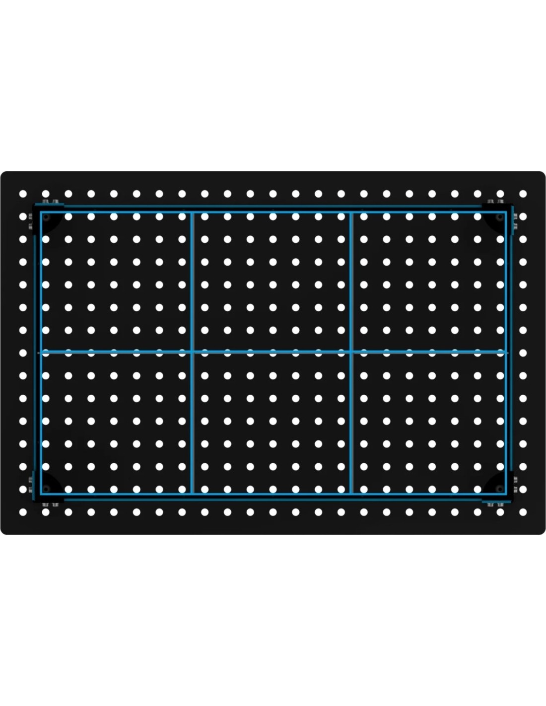 The engraved scale on the table top consists of vertical and horizontal lines in a 100x100mm grid. It serves as a reference point when setting up the structure and mounting tools. Using measuring tools, you can position your structure correctly to achieve the required dimensions.