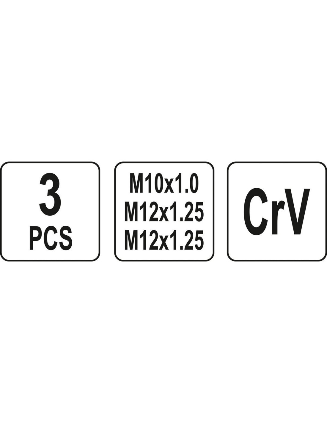Dydžiai: M12 x 1,25 x 59 mm, M12 x 1,25 x 94 mm ir M10 x 1 x 107 mm