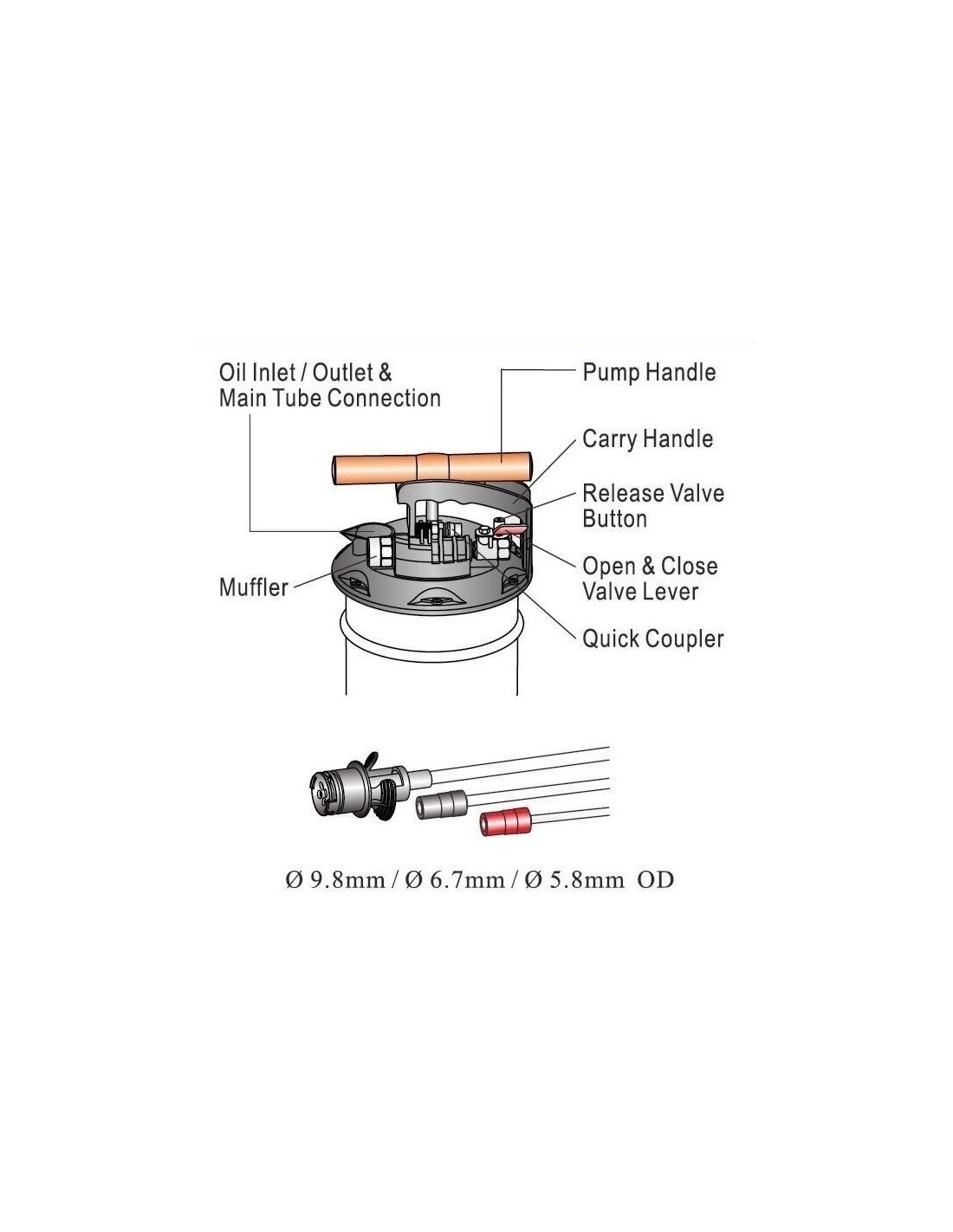 3 x vamzdeliai Ø 9,8 / Ø 6,7 / Ø 5,8 mm OD