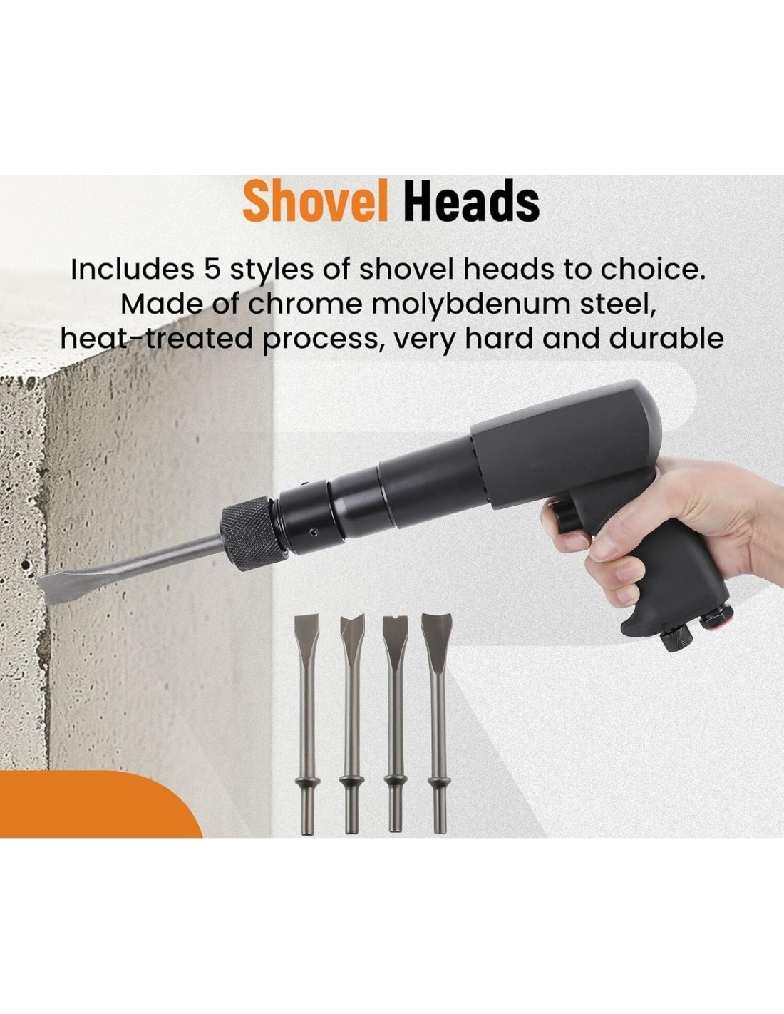 The air hammer adopts a self-locking buckle design, spring-free joint, which helps you to quickly and easily change chisel accessories, and it is firm and does not fall off, increasing your productivity as you work