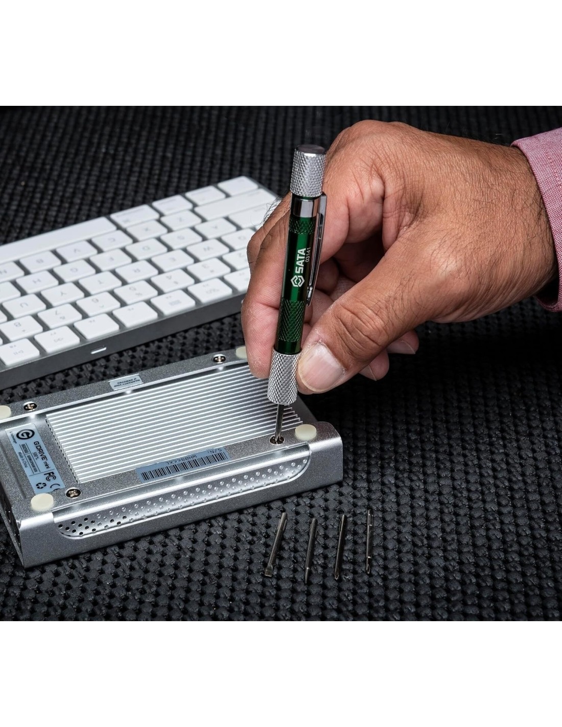 Atsuktuvas su rašiklio tipo laikikliu. Laikiklis pagamintas iš aukštos kokybės plieno su tiksliu poliravimu. Lengva nešiotis.