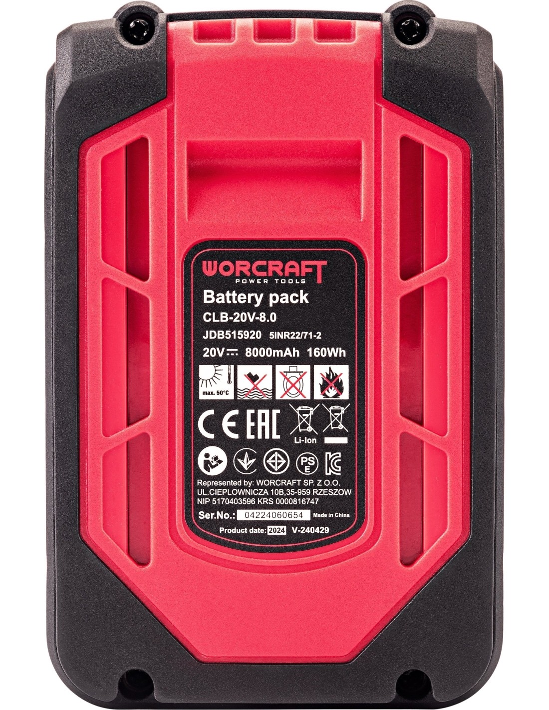 8.0 Ah Li-ion akumuliatorius tinka "Worcraft 20V" serijos įrenginiams