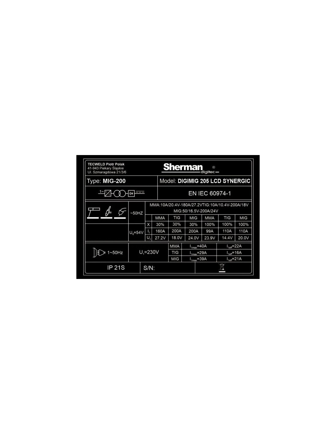 Sinerginis IGBT suvirinimo apartas, suvirinimo srovė 200A (30%), skaitmeninis valdymas, AC 230V 50Hz maitinimas, MIG, MMA, TIG Lift, litavimas, spalvotas LCD ekranas.