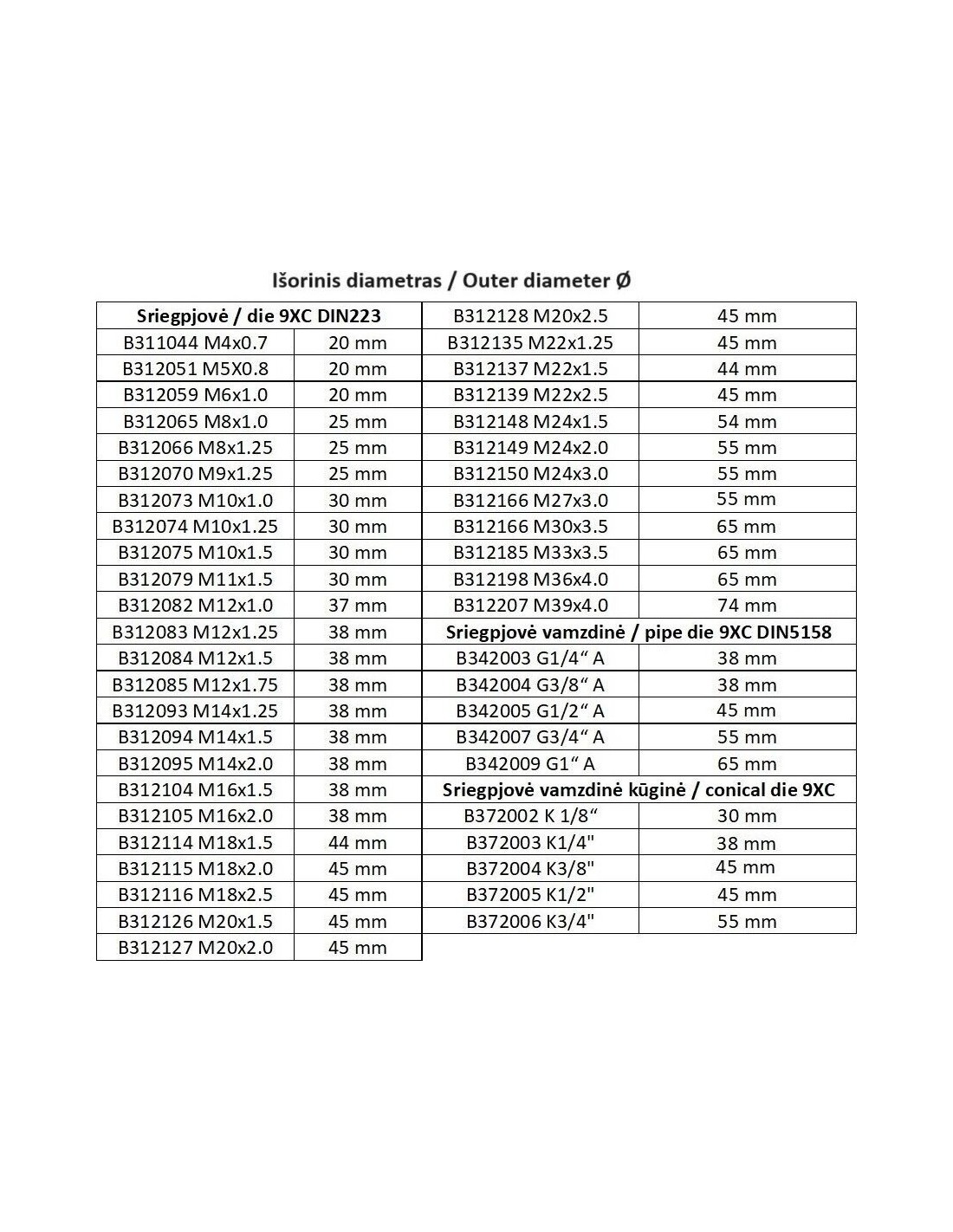 Machine and hand round thread dies 9XC DIN223 - M18x1.5