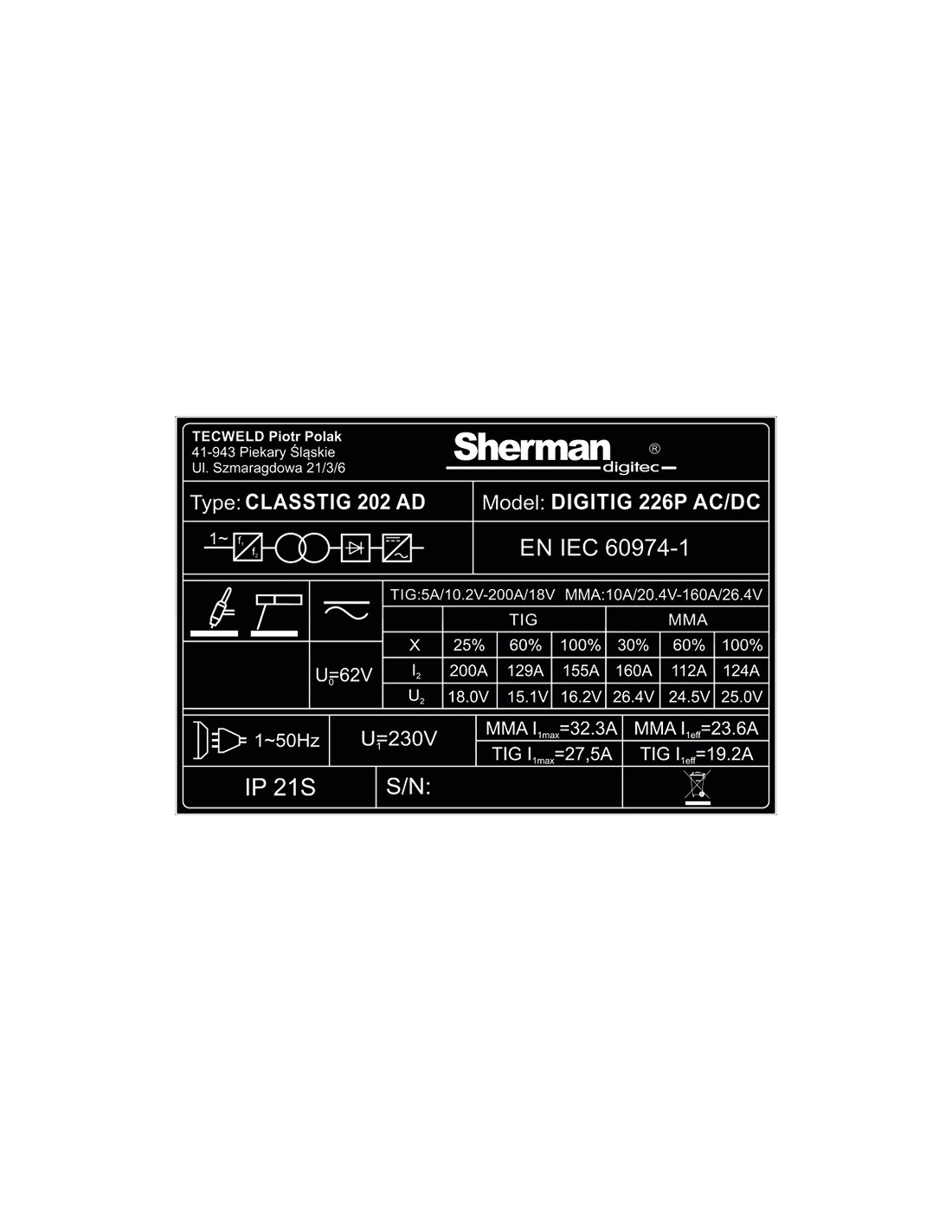 Inverter welder Sherman DIGITIG 226P AC/DC