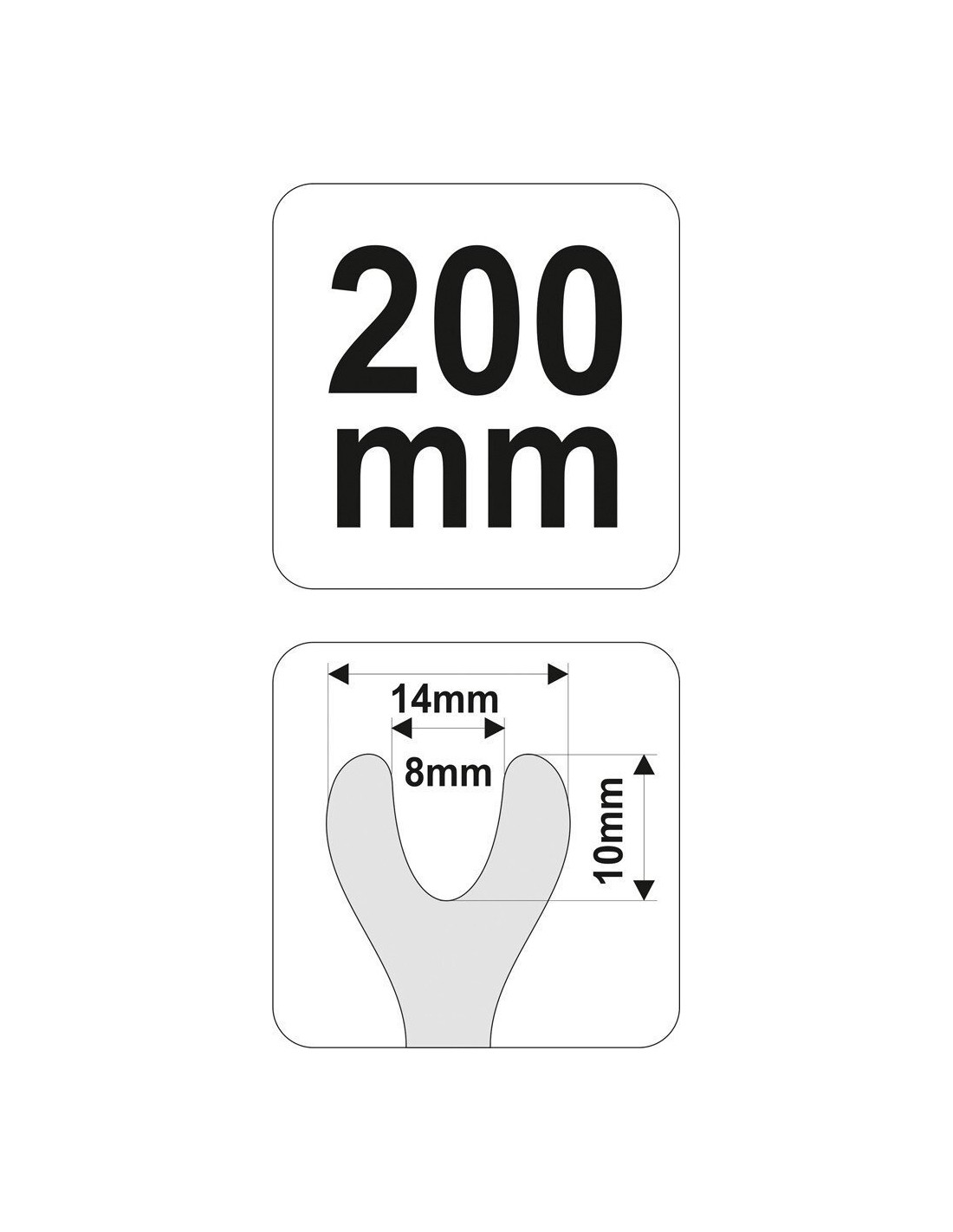 Matmenys: galvos skersmuo virš 10 mm; ilgis 200 mm; plotis 14 mm; kaiščio plotis 8 mm