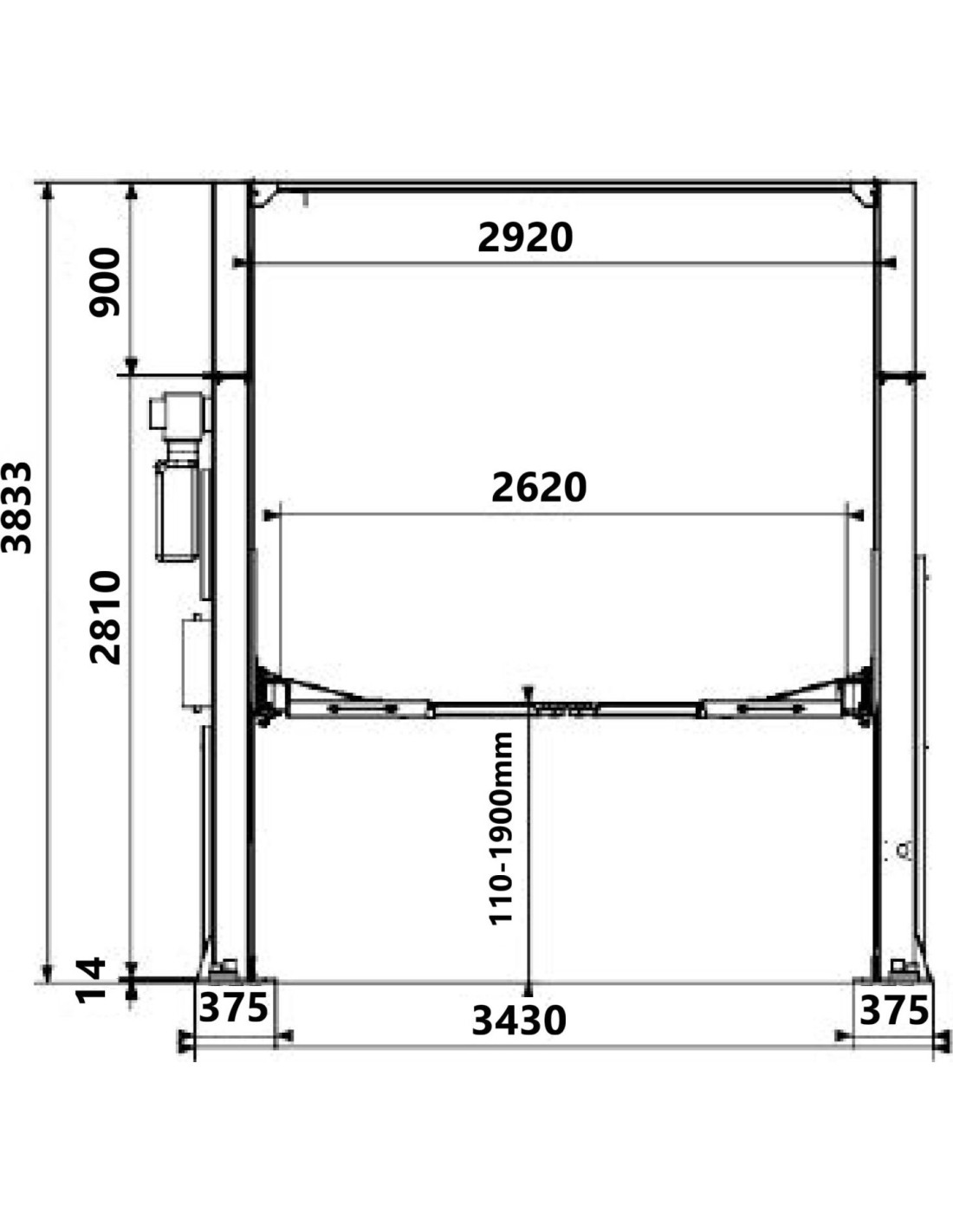 Hidraulinis keltuvas 4t (aut.f) (sinch.v.) H3833mm 380V