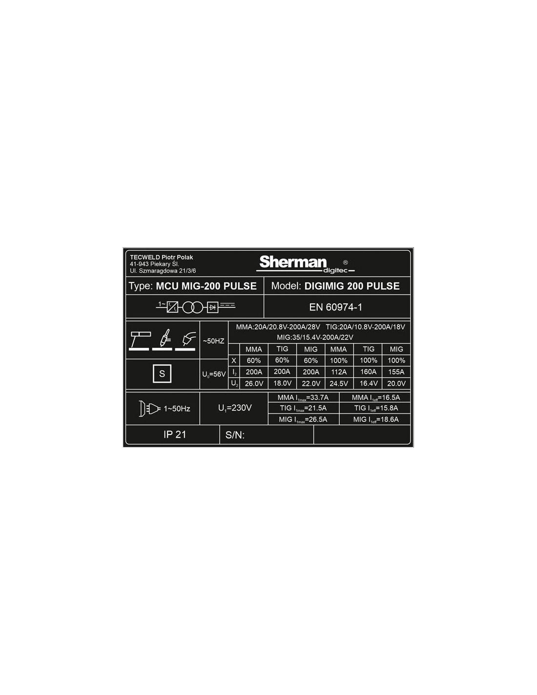 Inverter welder Sherman DIGIMIG 200 Pulse
