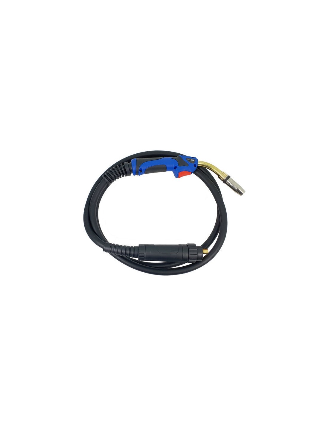 The welder comes factory‑configured for aluminum welding; a steel liner and a roller for welding steel are also included. The set additionally includes a MIG welding torch, electrode cable, work (ground) cable, and a hose for connecting the shielding gas.