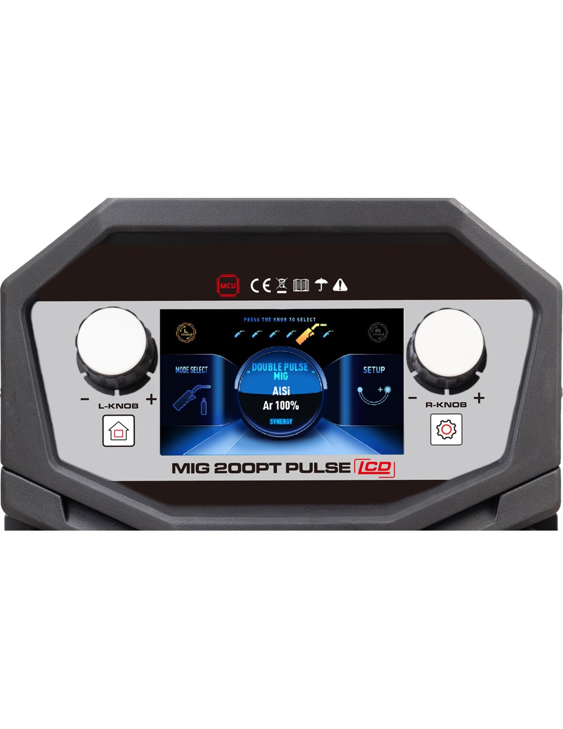 - Naudojama pasirinkti suvirinimo režimą (DC MIG, Single Pulse, Double Pulse, MMA, Lift-TIG).