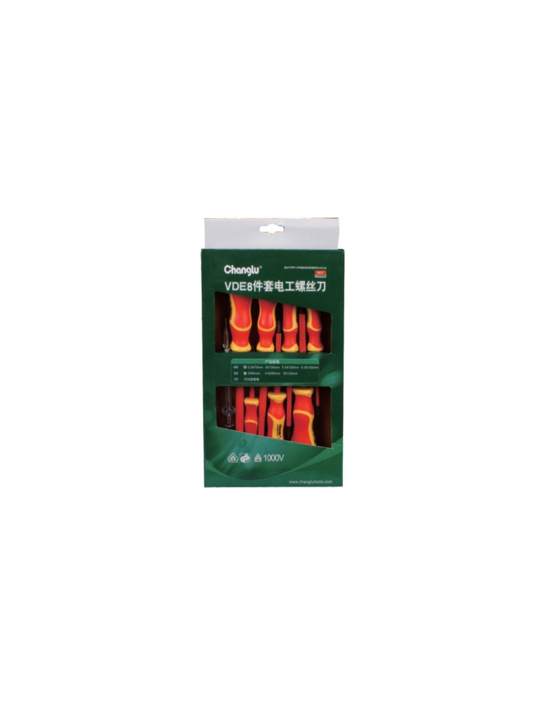 Plokščias: 2.5 x 75 mm, 4.0 x 100 mm, 5.5 x 125 mm, 6.5 x 150 mm; Phillips: #0 x 60 mm, #1 x 80 mm, #2 x 100 mm, 1 vnt įtampos testeris