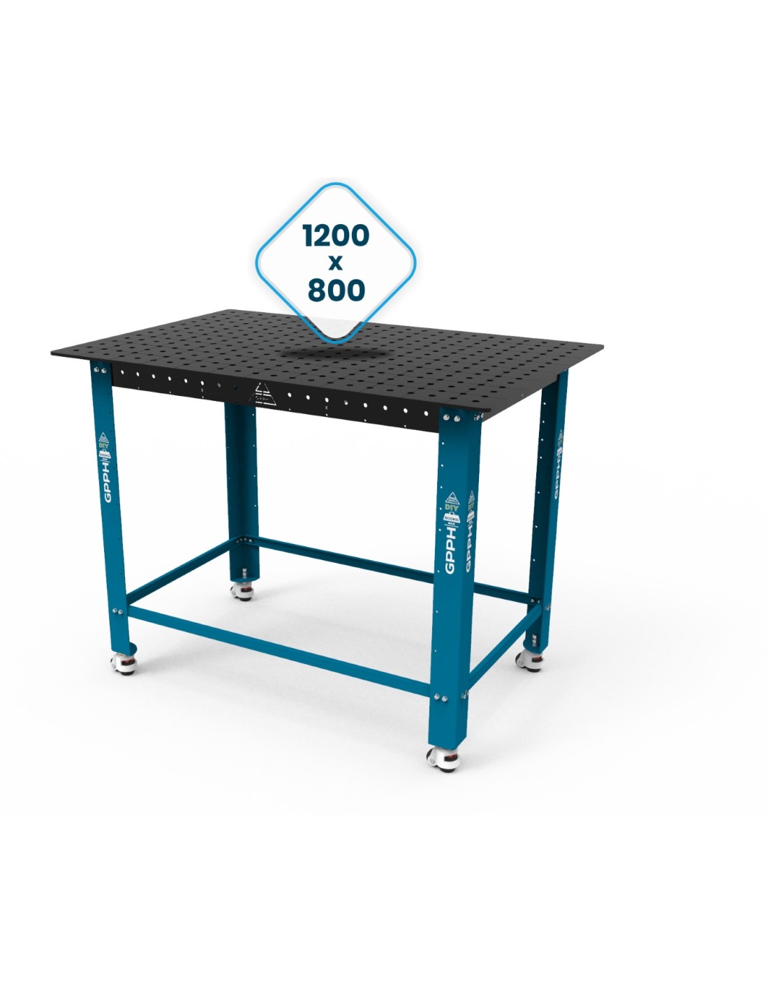 Suvirinimo stalas privalo būti lygus! DIY stalviršiai, kurių storis 8 mm, turi tankų standinimą, užtikrinantį idealiai lygią darbinę plokštumą. 1200×800 mm stalas turi iš viso 3 išilgines standumo briaunas. Tvirtas ir standus stalviršio pagrindas garantuoja maksimalų stabilumą darbo metu ir apsaugą nuo deformacijų. Stalviršio plokštumos lygumo nuokrypis per visą paviršių yra ±0,5 mm*