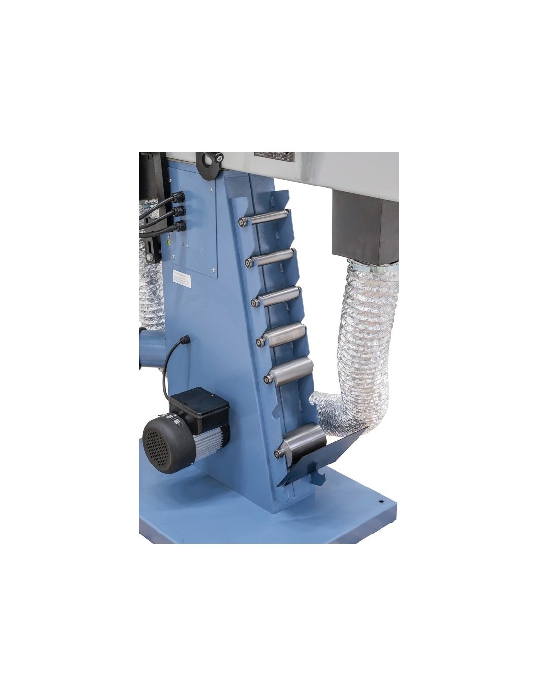 Vienas iš svarbiausių šio modelio privalumų yra integruota dulkių nutraukimo sistema. Ji užtikrina švaresnę darbo aplinką, sumažina abrazyvinių dalelių kiekį ore ir prisideda prie įrangos ilgaamžiškumo bei operatoriaus saugumo. Tai ypač aktualu dirbant su nerūdijančiu plienu ar atliekant didesnio intensyvumo šlifavimo darbus.