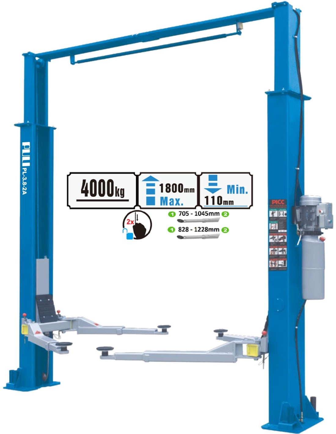 Hidraulinis dviejų kolonų keltuvas su mechaniniais saugumo fiksatoriais, 4.0t - 4.0t, 380V