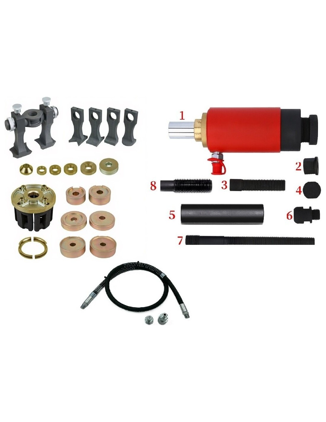 Guolių nuėmimo/uždėjimo rinkinys su hidrauliniu cilindru ir jungtimis 46vnt.