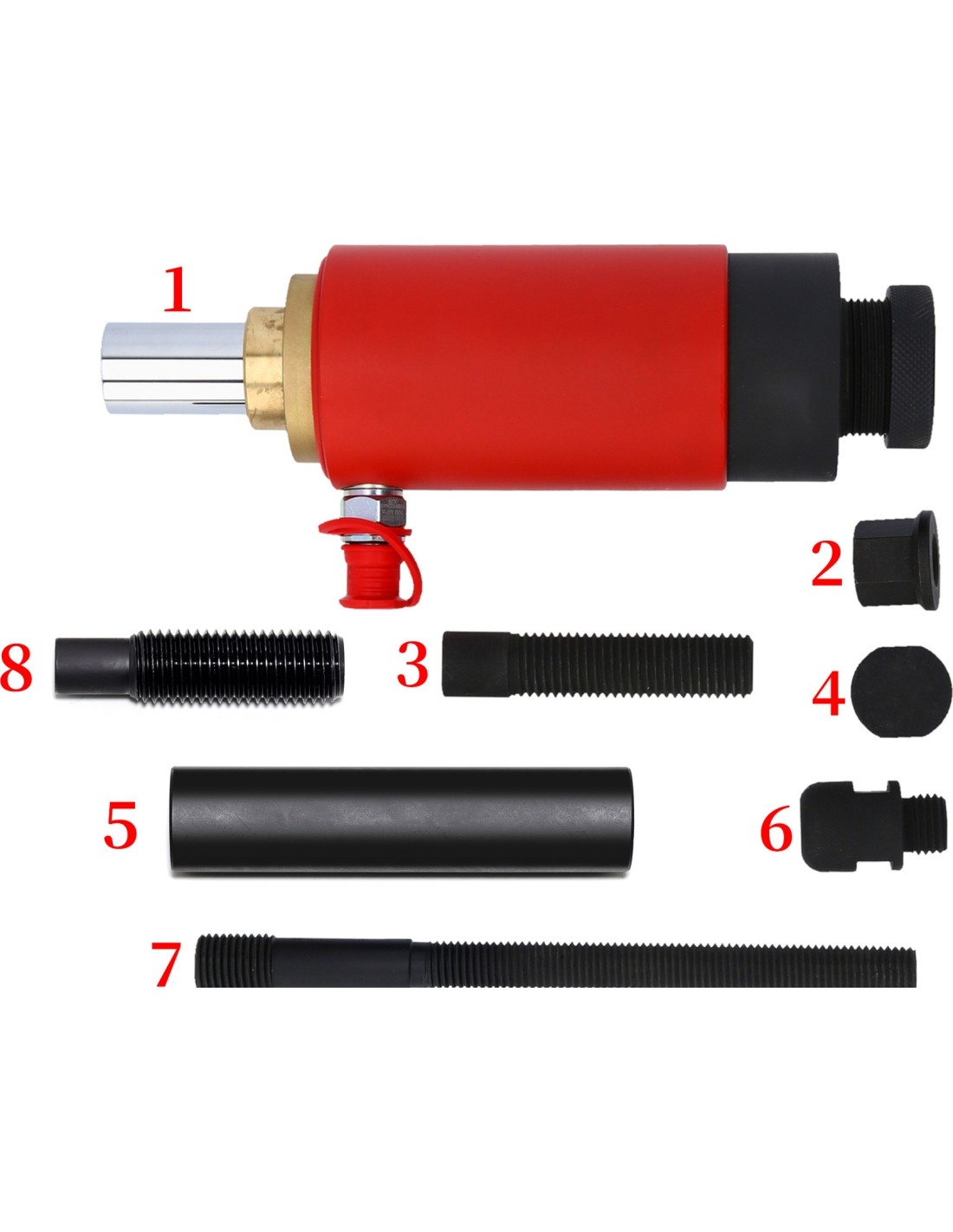 Šiame rinkinyje kartu rasite 22 t hidraulinį cilindrą, hidraulinę greitą jungtį ir 3/8" žarnos rinkinį.