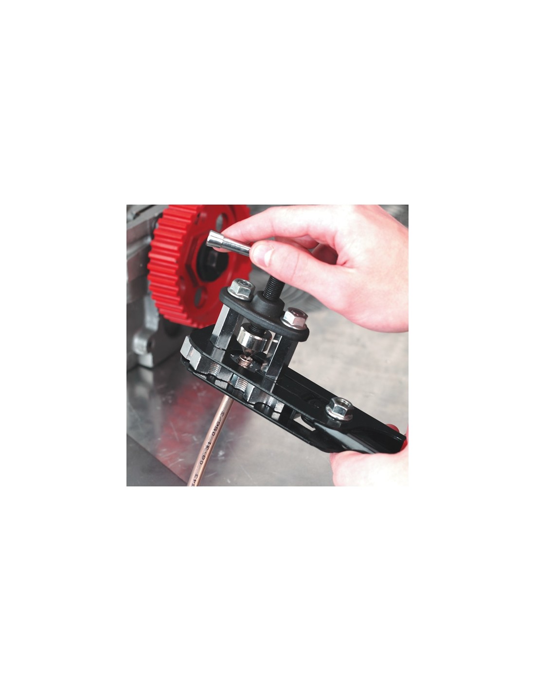 Su mechaniniu presavimo įrankiu ir spaustuvu.