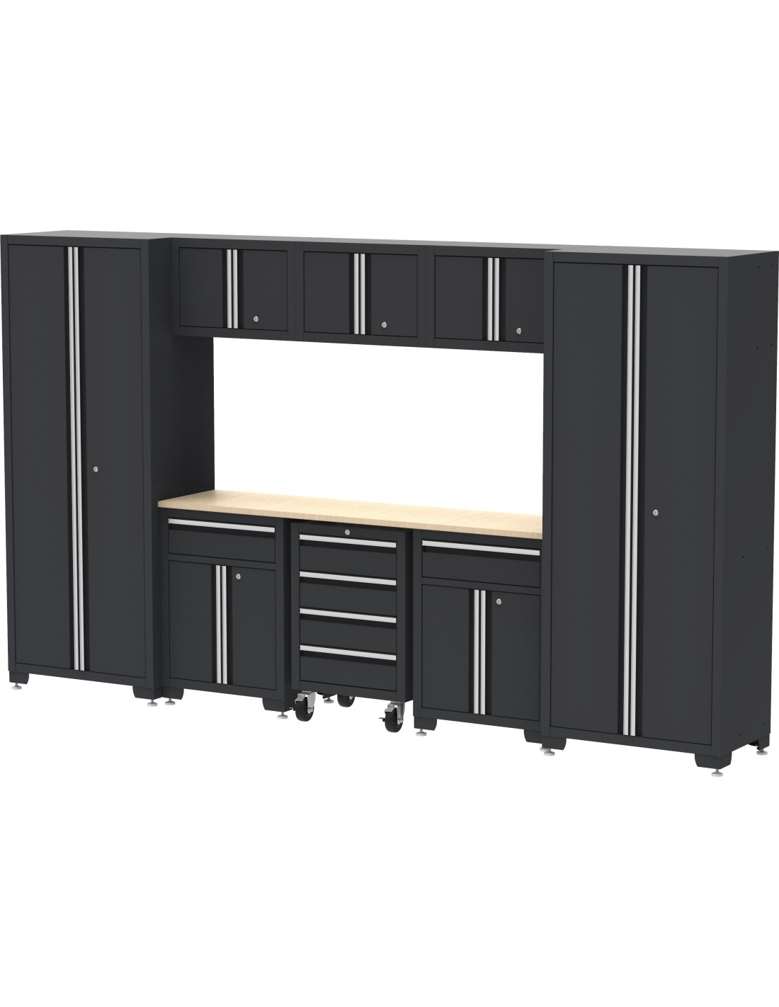 Bendras komplekto plotis – 3300 mm, todėl šis patvarus įrankių spintų rinkinys yra puikus sprendimas, užtikrinantis funkcionalų ir efektyvų darbo erdvės organizavimą.