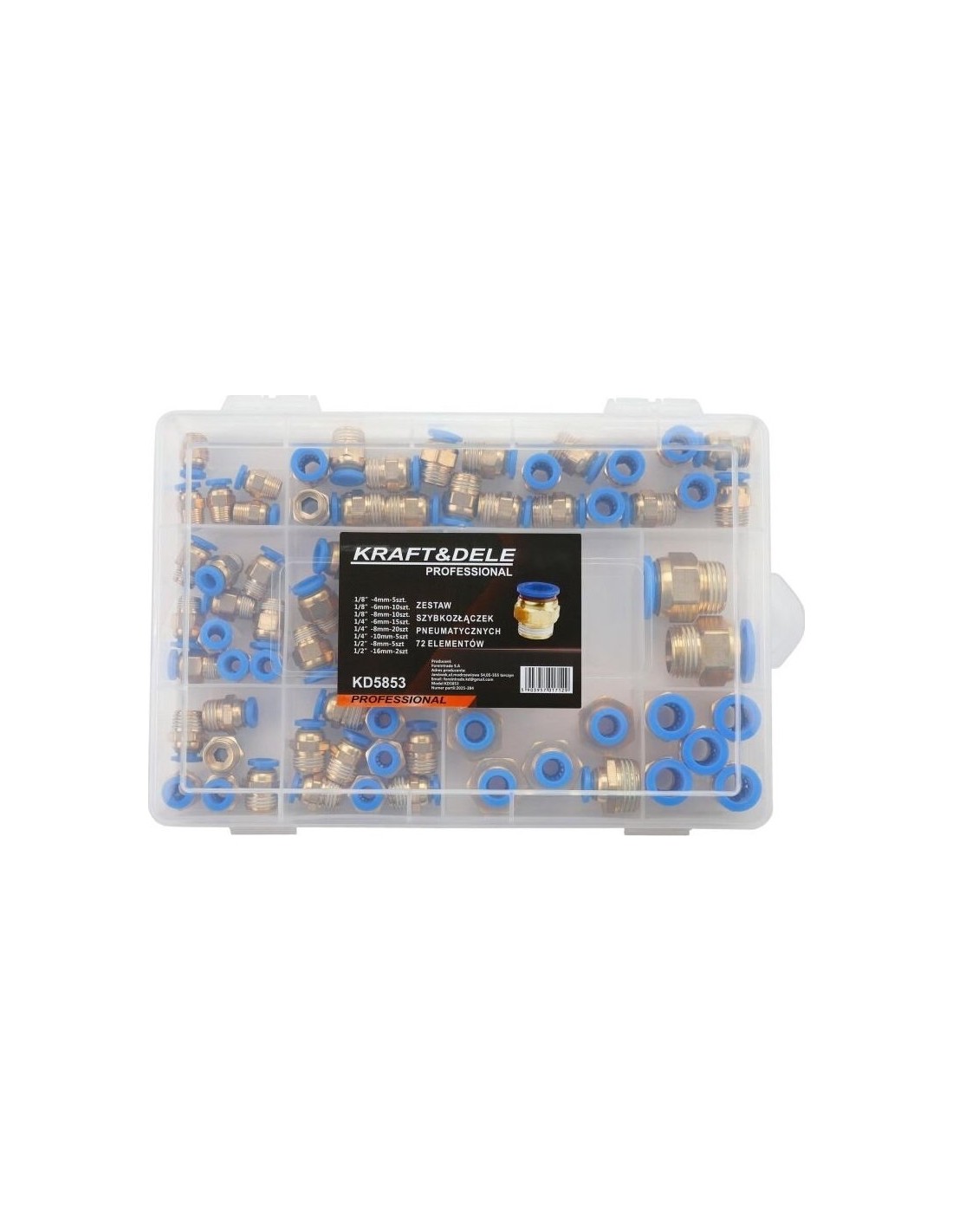 Greito jungimo vožtuvų su sriegiais rinkinys (4 - 16mm)(1/8"+1/4"+1/2") 72vnt.