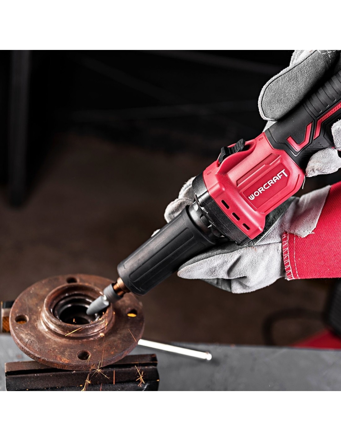 Akumuliatorinis mini tiesinis šlifuoklis WORCRAFT CDG-S20LiB skirtas bet kokių medžiagų tekinimui, šlifavimui, rūdžių šalinimui, frezavimui, poliravimui, veidrodiniam poliravimui ar graviravimui.