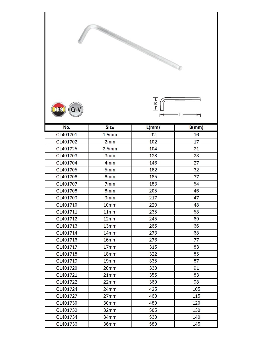 L-tipo šešiakampis raktas, apvalia galvute - 18mm