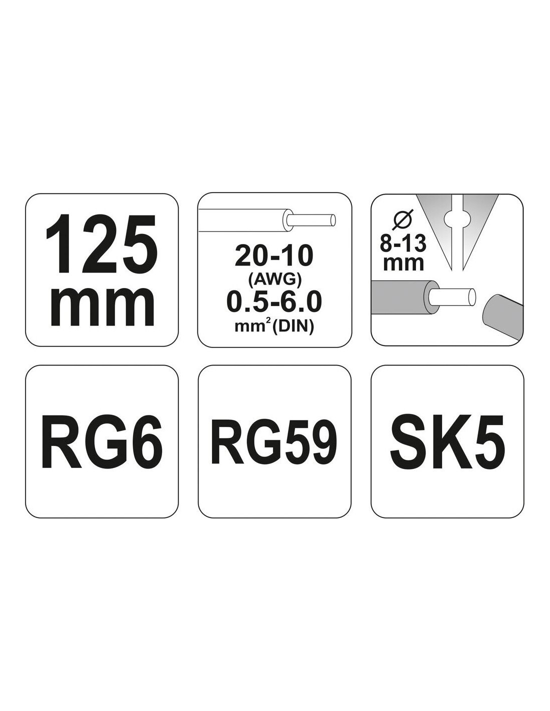 Galimybė nuimti izoliaciją nuo apvalių laidų, kurių skerspjūvis 0.5 mm2 – 6.0 mm2