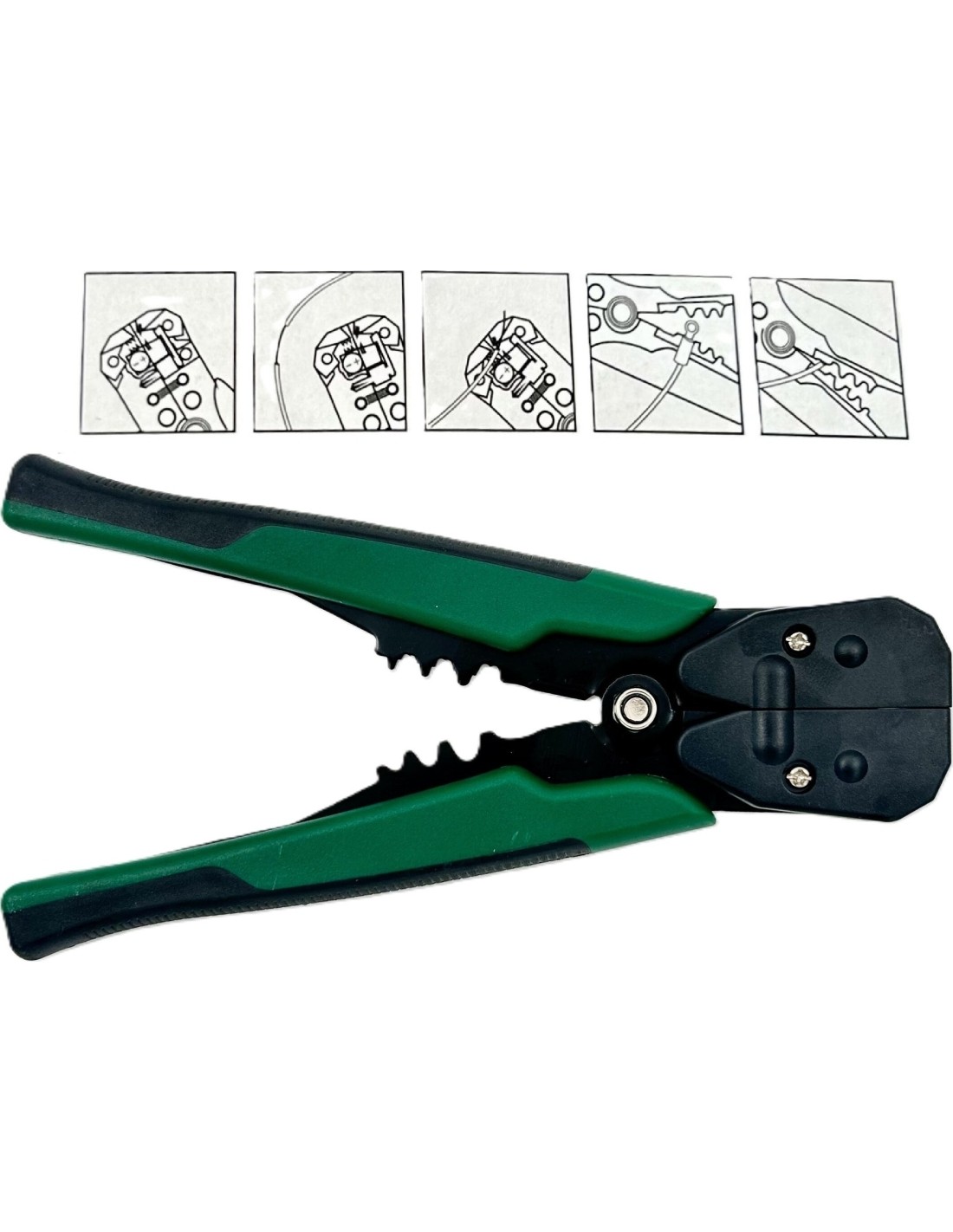 Tiksliai sureguliuokite varžtą, skirtą izoliuotų ir neizoliuotų antgalių užspaudimui