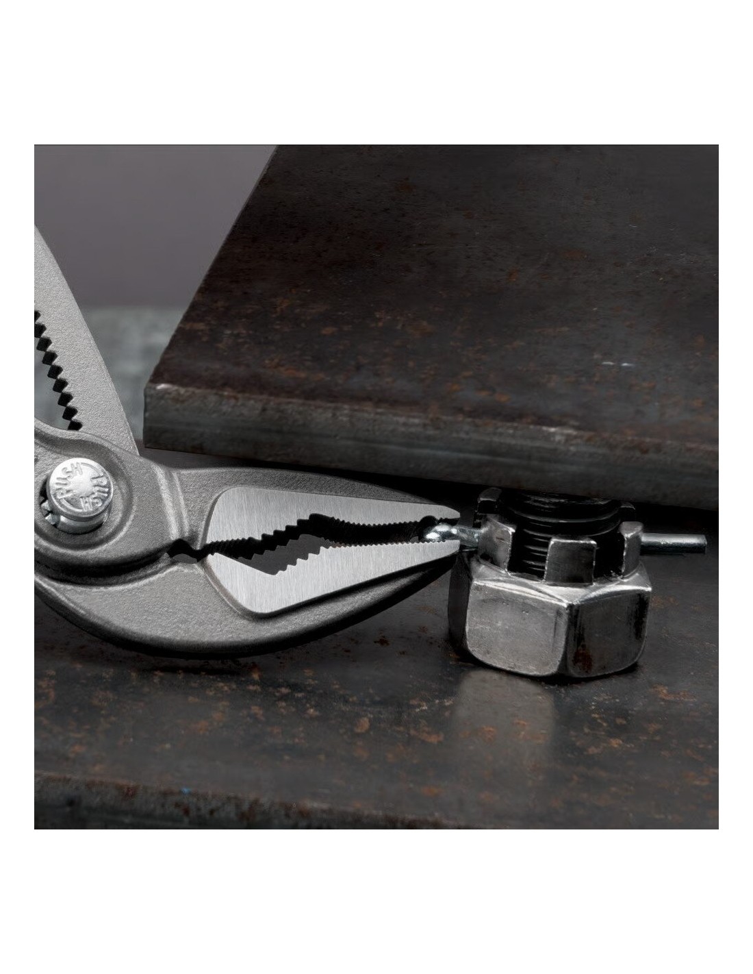 Ilgi, siauri žandikauliai su priekiniu griebimo dantymu: išilginis griebimo profilis apvalioms dalims, tokioms kaip varžtai ir varžtai.