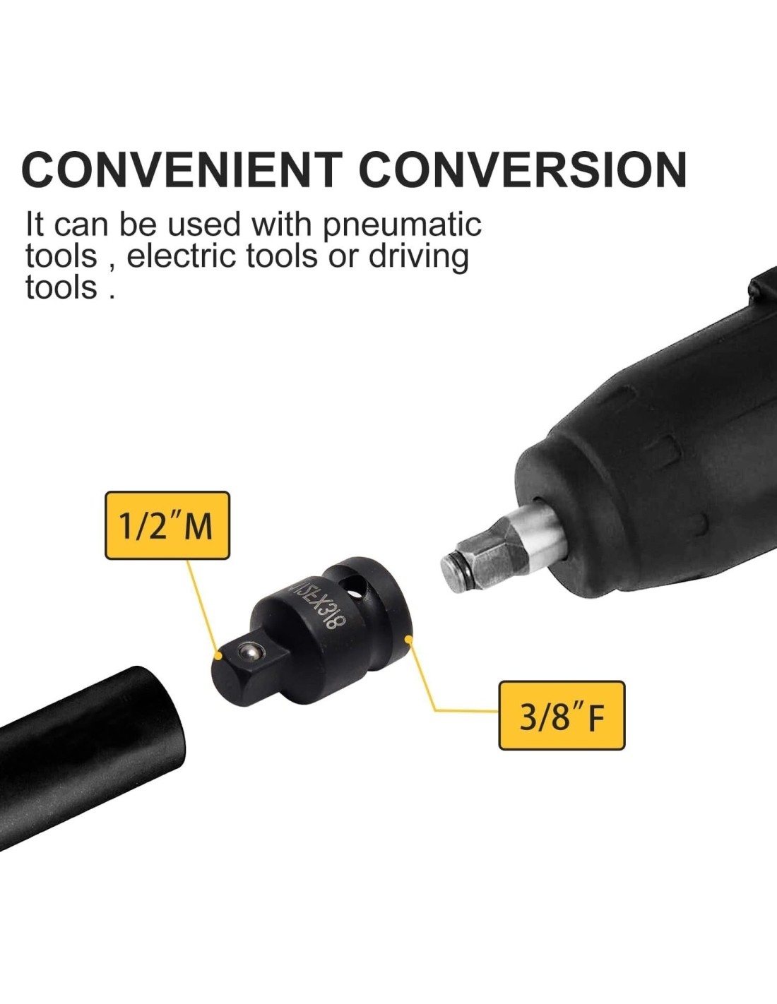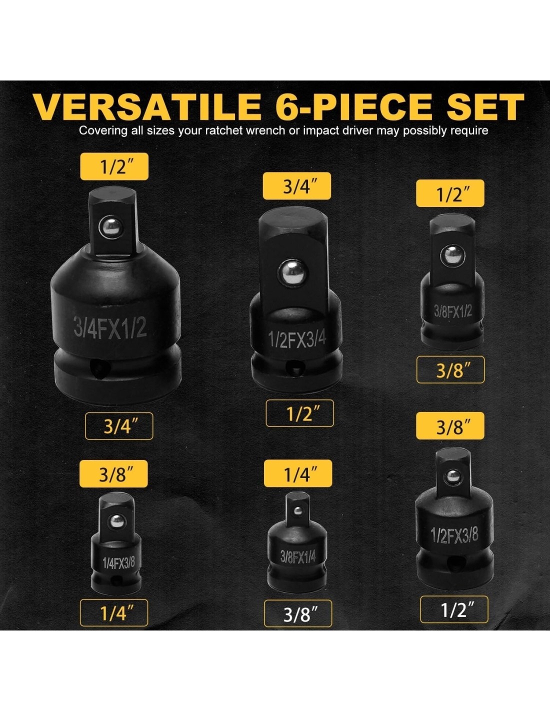 Adapteriai pagaminti iš aukščiausios kokybės chromo molibdeno legiruoto plieno, kuris pasižymi dideliu stiprumu, geru kietumu ir puikiu atsparumu smūgiams, užtikrinant jo ilgaamžiškumą ir patikimumą. lengvai praplečiant galvučių asortimentą, šis komplektas suteikia daugiau lankstumo