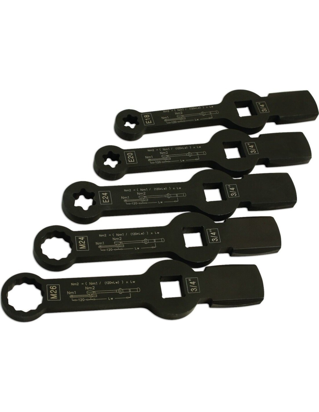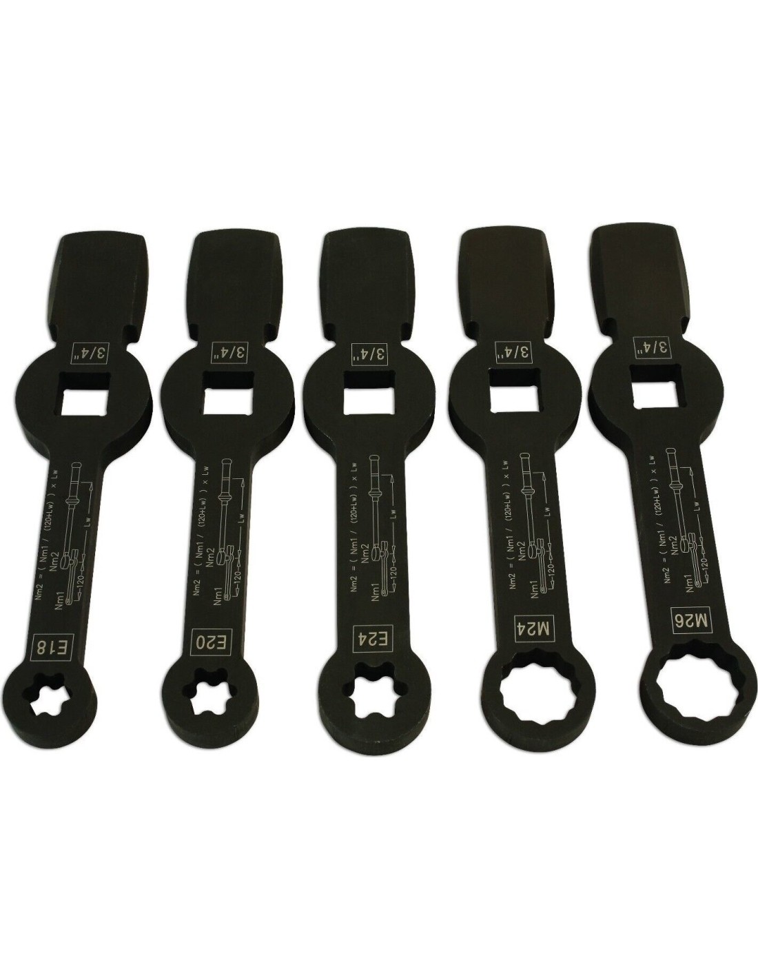 Smūginių veržliarakčių E-torx ir SPLINE rinkinys (5vnt)