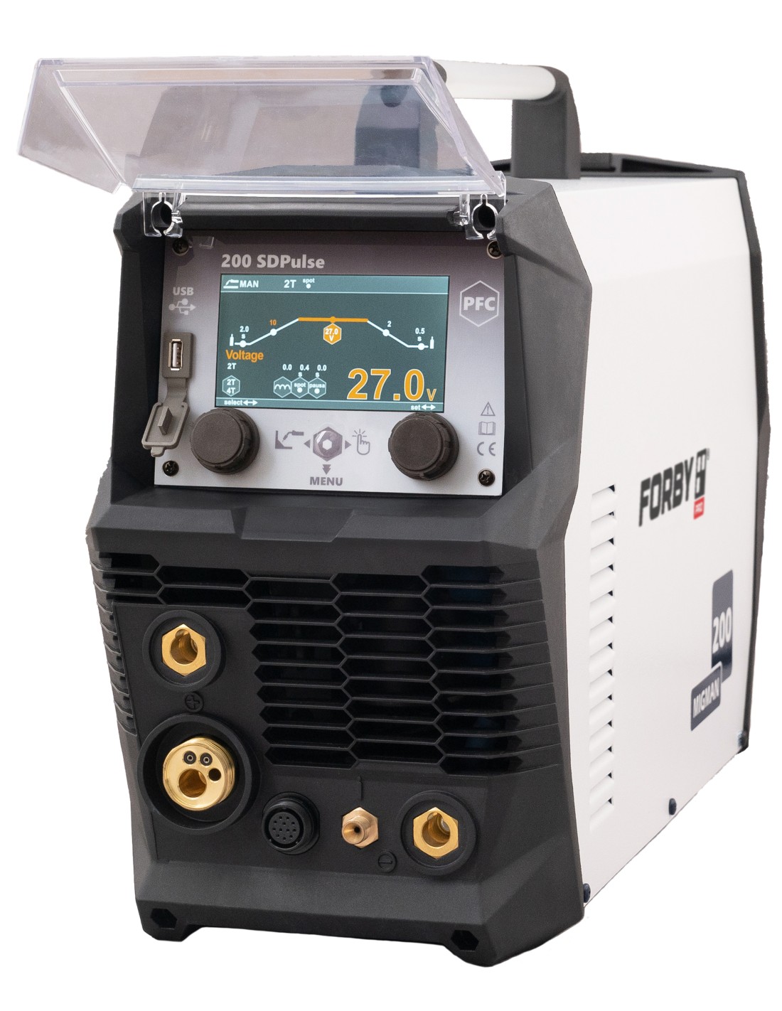 FORBY® 200 SD pulse – tai pulso režimo multifunkcinis inverterinis suvirinimo aparatas, skirtas MIG/MAG, MMA ir TIG suvirinimo metodams. Jis išsiskiria moderniu dizainu, aukštos kokybės suvirinimo charakteristikomis ir intuityvia vartotojo sąsaja.
